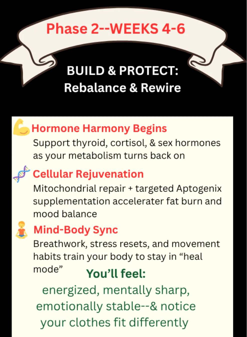 re-entry and hormonal recalibration--each week builds on the last